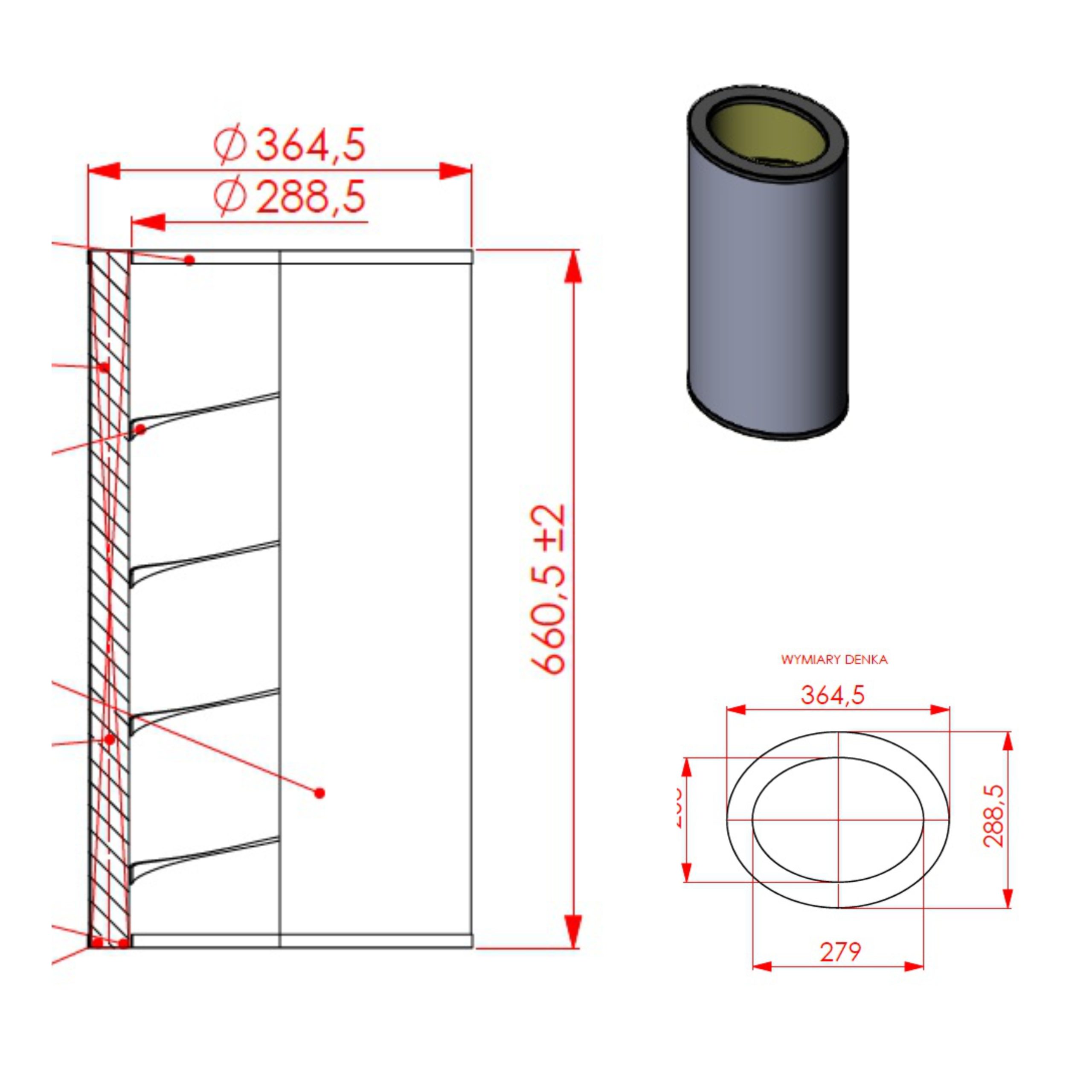 - Średnica wewnętrza: 279 x 203 mm
