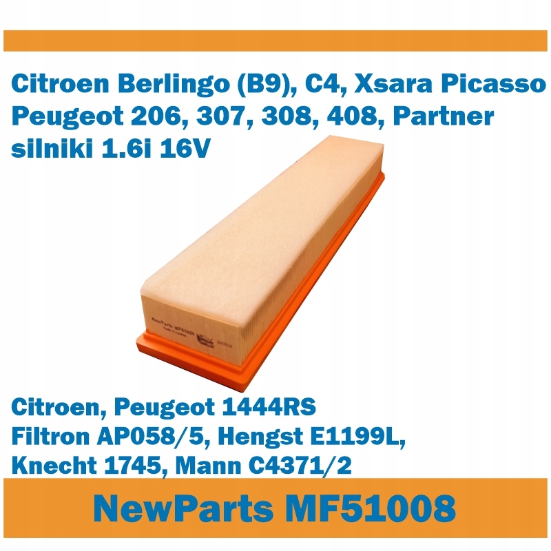 ❤️Parametry filtra Filtr powietrza MF51008 Citroen Peugeot 1.6i 16V zamiennik Filtron AP058/5